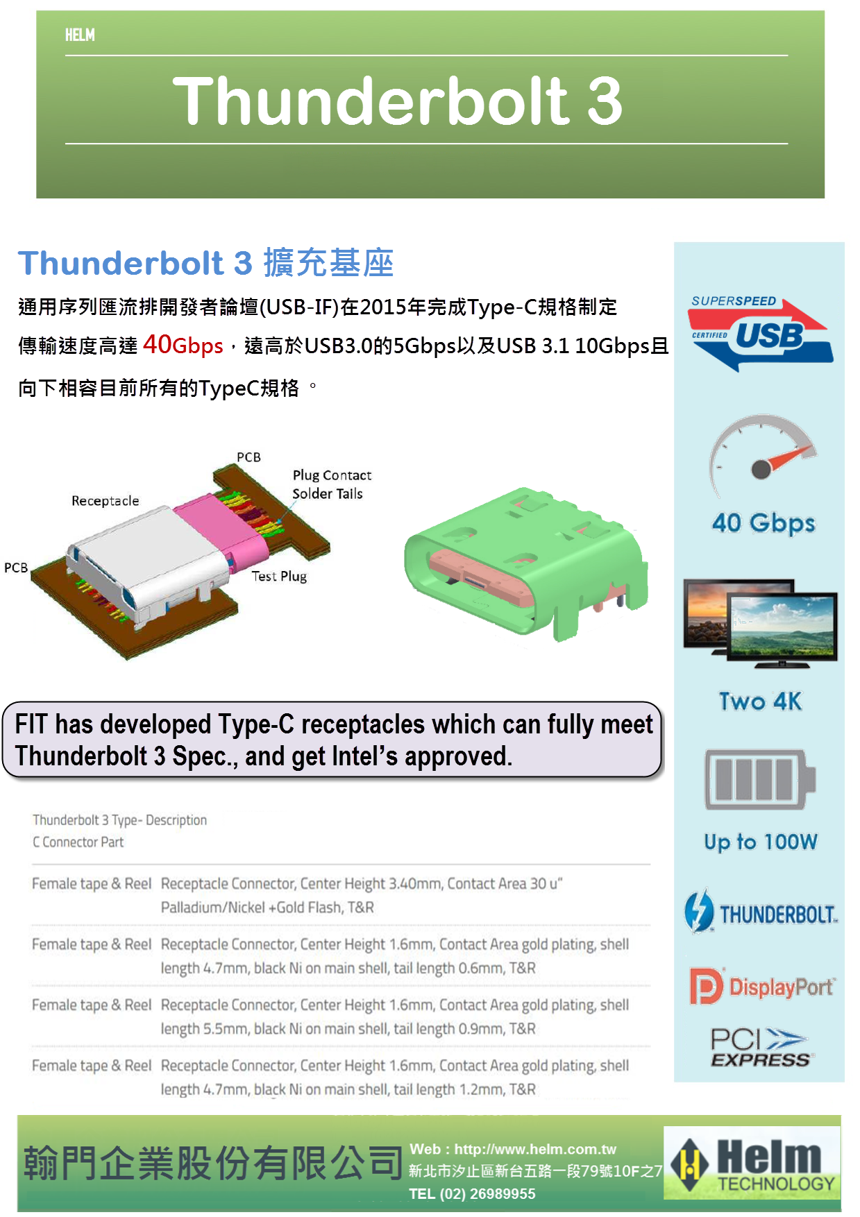 Intel也在2015 COMPUTEX首度發表 Thunderbolt 3技術結合 Type-C端子,