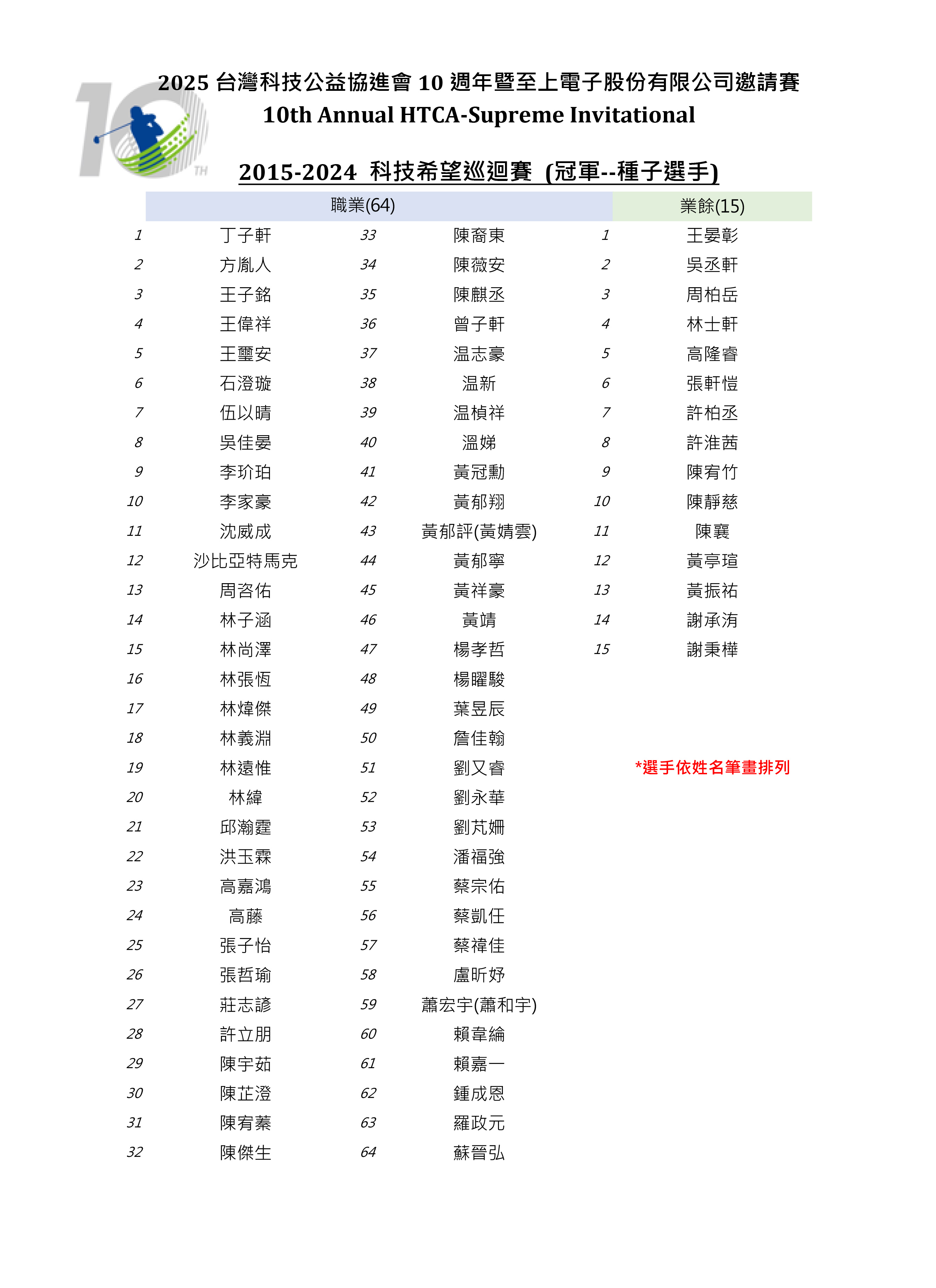 2025台灣科技公益協進會10週年暨至上電子股份有限公司邀請賽(10th Annual HTCA-Supreme Invitational)將於2025年4月15日至17日,在立益高爾夫球場隆重登場。本賽事由台灣科技公益協進會與至上電子股份有限公司共同主辦,並由台灣女子職業高爾夫協會及立益高爾夫球場協辦,預計將吸引國內頂尖選手同場競技。