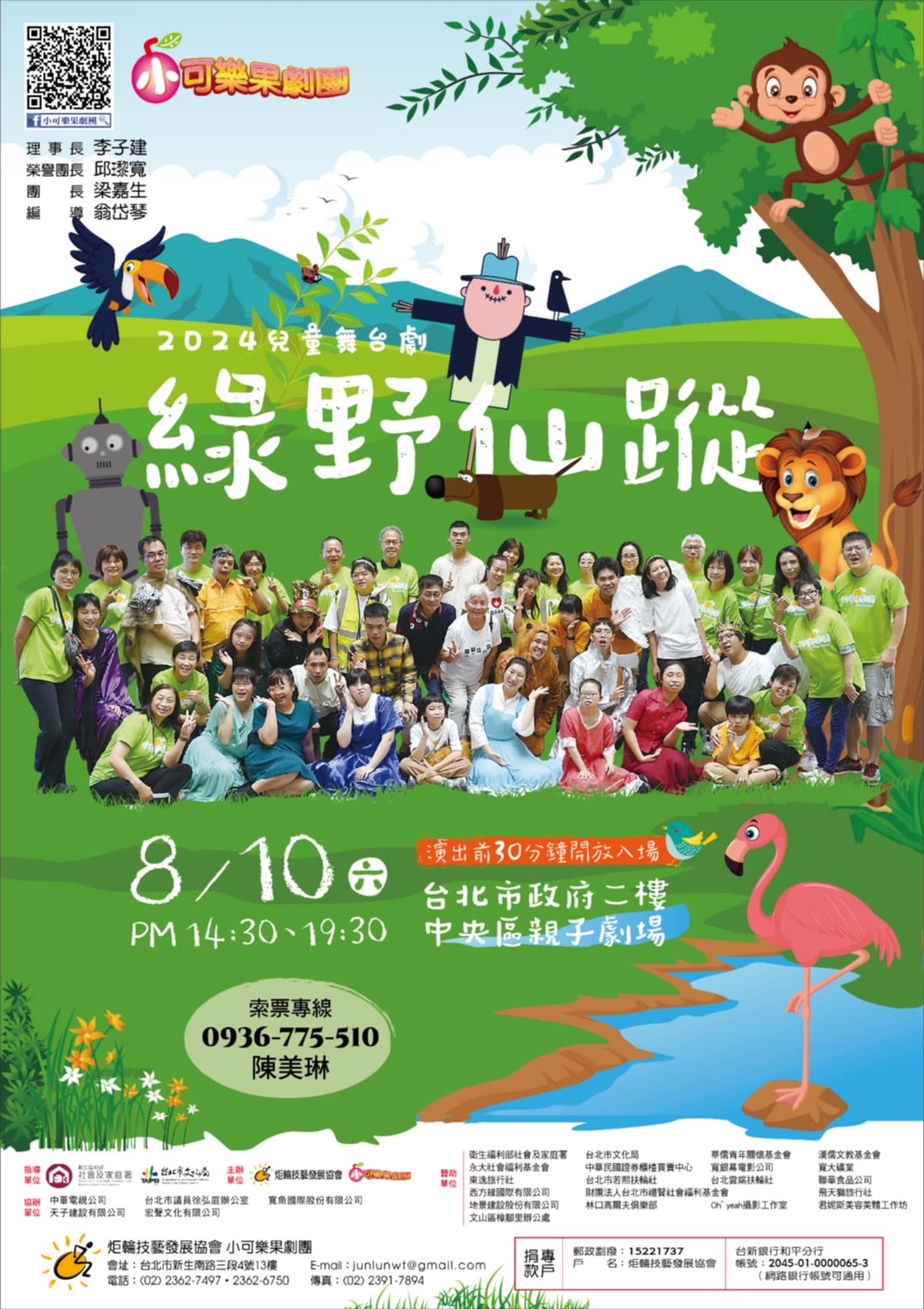 贊助款-炬輪技藝發展協會小可樂果劇團 「小可樂果劇團」隸屬炬輪技藝發展協會 炬輪技藝發展協會的創立宗旨是為身心障礙者設計技能訓練,開發新職種。同時也希望照顧其休閒活動與情感的紓解。也就是一方面給予專長訓練,讓他們建立自信,一方面鼓勵他們走出封閉的自我。 暖手相連助殘障 愛心洋溢滿人間 捐款金額 : NT$100,000 捐款日期 : 20240719