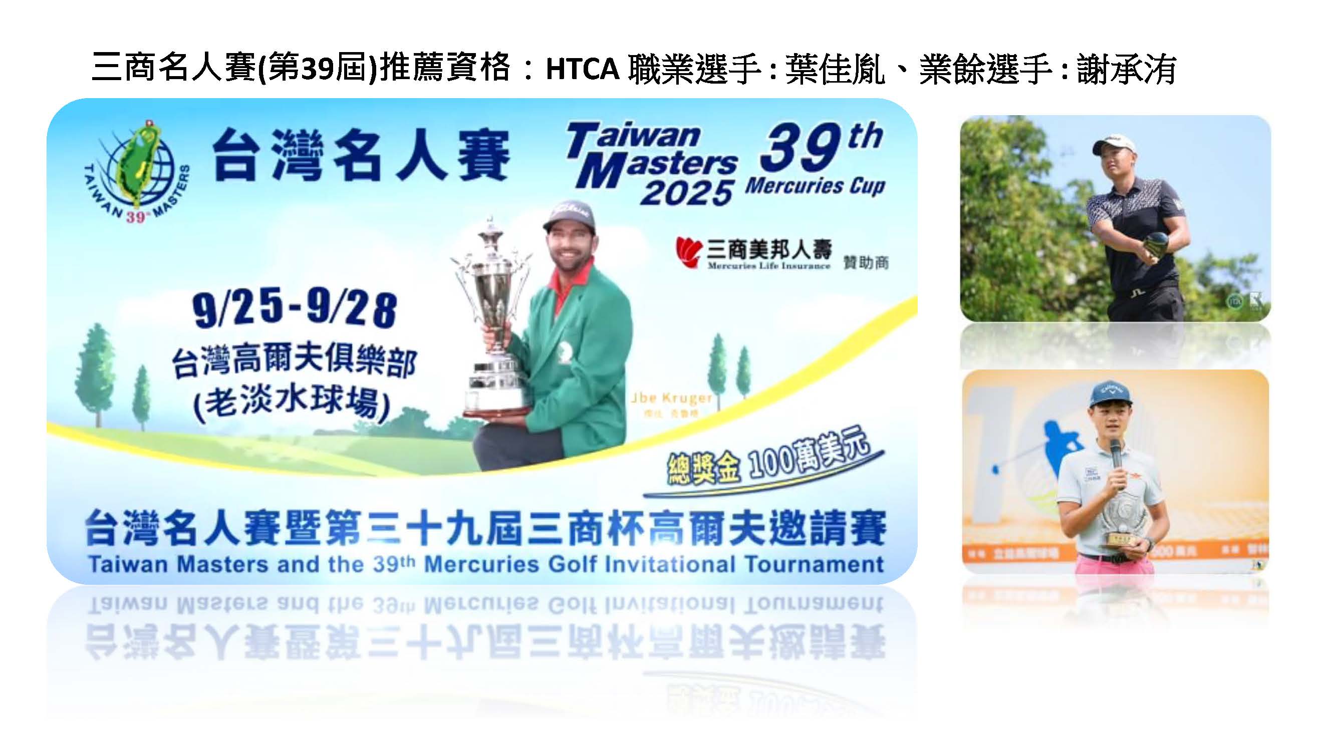 2025年第39屆三商盃名人賽將於9月25日至28日盛大舉行。今年,HTCA依據「科技希望巡迴賽」前三場累計成績,推薦兩位表現傑出的選手參賽(如排名選手已有參賽資格,則依排名順序遞補)。